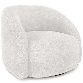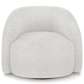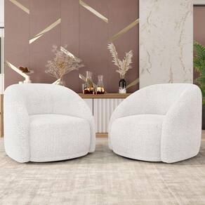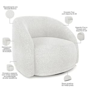 Características: Estrutura em madeira de reflorestamento de eucalipto, pinus e placas de OSB e imunizada contra mofo, cupim e microorganismos. Revestimento em Bouclê na cor Branco Encosto e assento com cintas elásticas de sustentação de alta resistência. Assento, encosto e braças com espuma D-26 e manta acrílica. Base giratória de metal preto. Peso suportado: Até 120 kg.