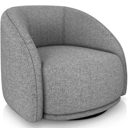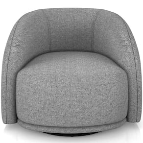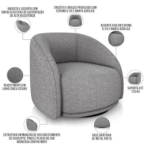 Características: Estrutura em madeira de reflorestamento de eucalipto, pinus e placas de OSB e imunizada contra mofo, cupim e microorganismos. Revestimento em Linho na cor Cinza Escuro. Encosto e assento com cintas elásticas de sustentação de alta resistência. Assento, encosto e braças com espuma D-26 e manta acrílica. Base giratória de metal preto. Peso suportado: Até 120 kg.