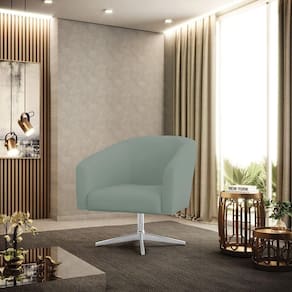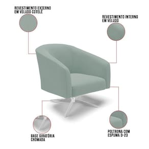 A Poltrona Decorativa Stella é a combinação perfeita de conforto, elegância e modernidade. Seu design curvo e marcante oferece uma sensação única de aconchego, como um abraço acolhedor, tornando-se a peça ideal para compor sua decoração com estilo e sofisticação. Revestida em veludo cotelê na cor menta, a poltrona Stella apresenta um encosto com acabamento texturizado e volumoso interno que lembra um plissado, adicionando um toque elegante e alinhado às tendências atuais. Sua estrutura robusta é sustentada por uma base giratória cromada, unindo resistência e design contemporâneo. A tendência desse estilo minimalista ganha destaque, conferindo sofisticação ao móvel, que é perfeito para qualquer espaço que exija funcionalidade e bom gosto. Com enchimento em espuma D-23 no encosto e assento, a Poltrona Decorativa Stella garante o máximo de conforto, mesmo em longos períodos de uso. Além desse modelo, também temos várias opções em base/pés e uma grande variedade de tecido/cores para atender ao seu estilo e conforto. E para deixar seu ambiente ainda mais harmonioso, oferecemos também kits especiais no mesmo design. Caso queira ajuda para escolher a melhor opção para o seu espaço, estamos à disposição! OBSERVAÇÃO IMPORTANTE: A é realizada no informado, não realizamos o para andares superiores, como subir escadas, elevadores ou guinchos. Não realizamos montagens, desmontagens ou instalações. Todos esses serviços são de responsabilidade do comprador. Dimensões do Produto: Altura Total: 81 cm Largura Total: 69 cm Profundidade Total: 60 cm Altura do Encosto: 40 cm Largura do Assento: 45 cm Profundidade do Assento: 45 cm Altura do chão ao Assento: 45 cm Espessura do Assento: 15 cm Espessura do braço: 7 cm Altura do chão ao braço: 70 cm Altura interna do braço: 28 cm Tamanho dos pés: 30 cm Peso: 21 kg Especificações do Produto: Estrutura: Madeira Eucalipto Espuma: D-23 Tecido: Veludo Cotelê, com acabamento texturizado interno Peso Suportado: Até 120 Kg Tipo de Pés: Base Giratória Cromada Tipo de Encosto: Fixo Complexidade da Montagem: Baixo Montagem: O produto vai montado, apenas parafusar a base : 90 dias contra de fabricação Instruções de Limpeza: Utilizar um pano limpo e levemente úmido Você irá Receber: 01 Poltrona - Entregue em: 01 Volume