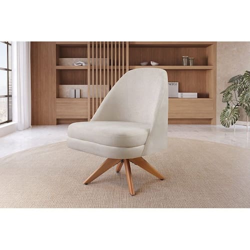 A poltrona Stella apresenta linhas curvas suaves, exalando um charme contemporâneo que se adapta a diversos estilos de decoração, desde o minimalista até o mais ousado. Fabricada com uma estrutura de MDF prensado, ela oferece a durabilidade necessária para suportar o uso diário, permitindo que você desfrute de seu conforto por longos períodos. Além disso, priorizamos o conforto, utilizando espuma de alta densidade D28 tanto no encosto quanto no assento. Sua base giratória adiciona um elemento prático e dinâmico, permitindo liberdade de movimento e facilitando a interação em espaços sociais. Feita com madeira seca e tratada, a base garante estabilidade e durabilidade. Garanta já a sua poltrona Stella e transforme seu ambiente! Acompanha Almofadas extras: Não Acompanha Puff: Não Almofada do assento: Fixa Almofada do encosto: Não Possui Altura do assento até o chão: 47 cm Altura do Encosto: 43 cm Ambiente Principal: Sala de Estar Complexidade da Montagem: Baixa: pode ser montado por uma pessoa sozinha Cor: Nude Cor do Produto: Nude Design Assinado: Não Enchimento do Assento: Espuma D-28 Encosto para a Cabeça: Não Estampado: Não Extensível: Não Firmeza do Assento: Médio Itens Inclusos: 1 poltrona stella + manual de montagem Linha ou Coleção: Stella Material dos Pés: Madeira seca e tratada Modelo de Poltrona: Giratório Necessita Montagem: Sim Origem do Produto: Nacional Peso: 15 kg Possui Percintas Elásticas: Não Possui Pés: 01 Possui Rodízio: Não Recomendações de Uso, Manutenção e Limpeza: Utilizar aspirador de pó, escova com cerdas macias ou limpeza a seco. Não utilizar produtos químicos, abrasivos ou limpeza a vapor. Evitar exposição prolongada ao sol. Sistema de Montagem: Parafusos Suporta Até (kg): 120 kg Tecido Predominante: Linho Tipo de Assento: Fixo Tipo de Encosto: Fixo Tipo de Espuma do Assento: Espuma Convencional Tipo de Poltrona: Decorativa Marca: Zurc Decor