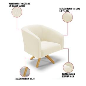 Poltrona Decorativa Giratória MA30 Stella Cotelê Ext/Veludo D03 - D`Rossi - Branco