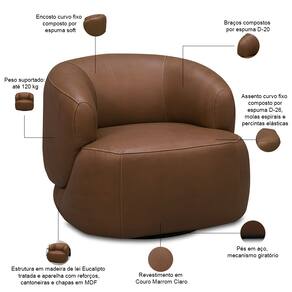 Essa poltrona orgânica conta com design curvo e encontra o luxo do revestimento em couro, criando uma peça que impressiona antes mesmo de ser experimentada. Seu segredo? Curvas hipnóticas que transformam qualquer living em galeria, maciez, conforto que sustenta sem afundar e base giratória para rodopiar entre conversas e paisagens. A poltrona de couro Begur é ideal para quem vê a decoração como arte; afinal, com essa poltrona decorativa o seu ambiente saíra do óbvio.