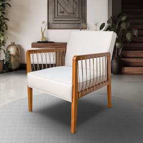 Para você que deseja deixar a sua sala ou escritório muito mais sofisticado, apresentamos esse lindo modelo de poltrona. A poltrona Haia tem um design moderno e vai trazer todo o conforto que você precisa. Seu assento tem percintas elásticas italianas que são da melhor qualidade e vai aumentar a vida útil da poltrona, também tem a espuma de alta resiliência HR26 que são conhecidas pela elasticidade somada ao conforto se comparada às espumas tradicionais, e além da espuma HR26 o assento também tem plumante em silicone que vai trazer ainda mais conforto. Os braços são em madeira maciç e a almofada fixa do encosto é de fibra de silicone. Confira as características e dimensões. Os detalhes do braço com cordas nauticas da todo um toque refinado ao seu ambiente.
