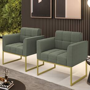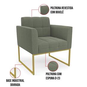 A Poltrona Elisa é uma poltrona que combina elegância, conforto e durabilidade. Ela tem um design retrô e sofisticado, com Base Industrial Dourado e revestimento em tecido Bouclê. Ela é ideal para sala de estar, recepções, escritórios, cozinhas ou qualquer outro espaço que você queira decorar com estilo e bom gosto. Ela tem uma estrutura em madeira de reflorestamento eucalipto, que garante a resistência e a sustentabilidade do produto. Ela suporta até 120 kg de peso, podendo ser utilizada por pessoas de diferentes biotipos. Ela tem um acabamento reforçado e espuma de qualidade D23, que oferece maciez e aconchego. Ela contém detalhes de costura no encosto e assento, resultando em um acabamento impecável, conferindo muito mais valor e elegância ao produto. A Poltrona Elisa é um móvel de alta qualidade, beleza e funcionalidade. Ela é fácil de transportar, pois tem um peso leve e um tamanho compacto. A Poltrona Elisa é um produto que vai fazer a diferença na sua decoração e no seu bem-estar. Ela vai trazer charme, conforto e durabilidade para o seu ambiente. Aproveite essa oferta e leve para casa uma poltrona de qualidade por um preço incrível. Essa é a sua chance de ter uma poltrona maravilhosa por um preço imperdível. Corra e garanta seu Kit 2 Poltronas antes que acabe o estoque!