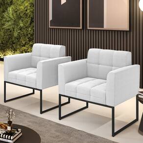 Poltrona Decorativa Industrial Preto Kit 2 Elisa Bouclê D03 - D`Rossi - Branco