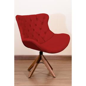 Poltrona Decorativa Júlia Pé Giratório de Madeira Capitonê - Vermelho