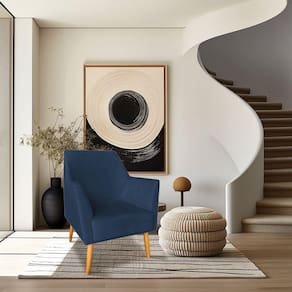 Poltrona Decorativa Julia Veludo Azul Marinho Pés Palito Castanho - Pallazio