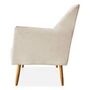 Poltrona Decorativa Julia Veludo Bege Pés Palito Castanho - Pallazio