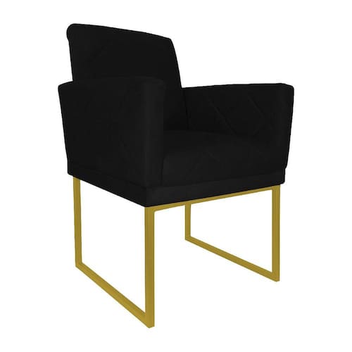 Poltrona Decorativa Klara Suede Preto Base De Ferro Dourada - Vallisa Decor