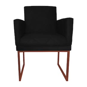 Poltrona Decorativa Klara Suede Preto Base Metálica Cobre - Vallisa Decor