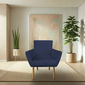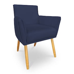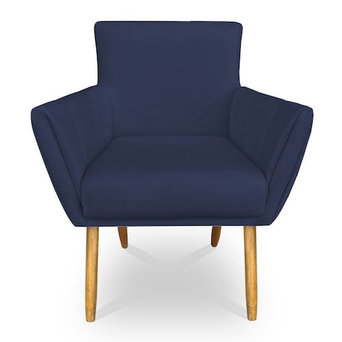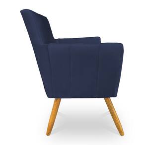 Poltrona Decorativa Leticia Suede Azul Marinho Pés Palito Castanho - Pallazio