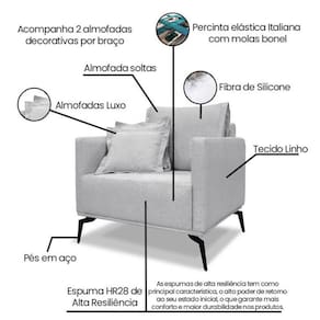 Linho, Madeira Eucalipto, Aço Carbono, Espuma HR28, Fibra de SiliconeVendido e entregue por WebContinental