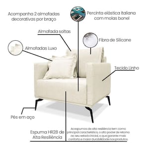 Poltrona Decorativa Livorno Linho Com Pés Em Aço - Ssx Multicoisas Cor Natural Para você que deseja deixar a sua sala ou escritório muito mais sofisticado, apresentamos esse lindo modelo de poltrona. A poltrona Livorno tem um design moderno e vai trazer todo o conforto que você precisa. Seu assento tem percintas elásticas italianas que são da melhor qualidade e vai aumentar a vida útil da poltrona, também tem a espuma de alta resiliência HR28 que são conhecidas pela elasticidade somada ao conforto se comparada às espumas tradicionais, e além da espuma HR28 o assento também tem plumante em silicone que vai trazer ainda mais conforto. Os braços são em madeira maciça com sapatinha e a almofada do encosto é de fibra de silicone. Confira as características e dimensões.Informações Técnicas:Tecido: LinhoEstrutura: Madeira EucaliptoMaterial Pés: Aço CarbonoDensidade da Espuma: HR28Assento: Fixo com percintas elásticas italiana, espuma HR28 e plumante em siliconeEncosto: Almofada solta em fibra de siliconePeso Suportado: Até 180 kgMontagem: O produto vai montado.Medidas:Altura total: 92 cmLargura total: 80 cmProfundidade total: 92 cmAltura do chão ao assento: 46 cmAltura do encosto: 46 cmProfundidade do assento: 54 cmAltura dos pés: 18 cmAltura do chão ao braço: 71 cmLargura do braço: 8 cmPeso: 27,5 kg