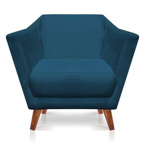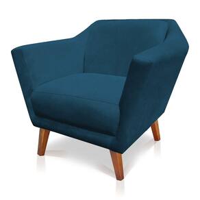 Poltrona Decorativa Lorena Suede Pés Castanho Azul Marinho