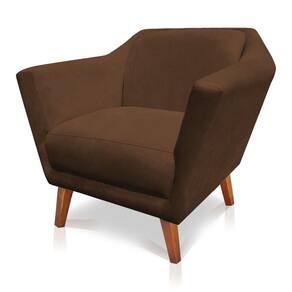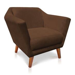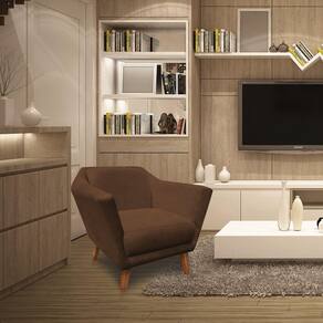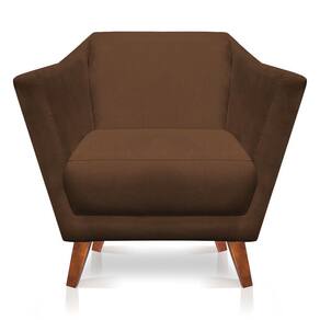 Poltrona Decorativa Lorena Suede Pés Castanho Marrom