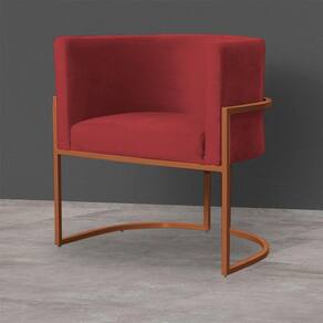 Poltrona Decorativa Luana Base Bronze Veludo Vermelho - Montanaris Decor