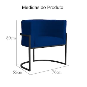 Poltrona Decorativa Luana Suede Azul Marinho Base Preta Ms Decor