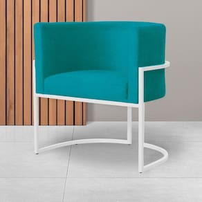 Poltrona Decorativa Luana Suede Azul Tifany Base Branca Ms Decor