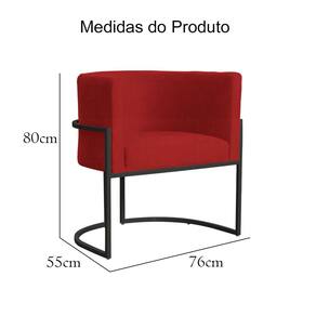 Poltrona Decorativa Luana Suede Vermelho Base Preta Mz Decor