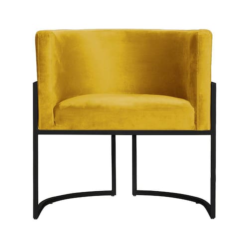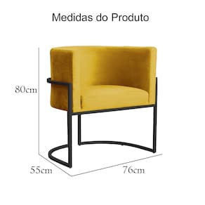 Poltrona Decorativa Luana Veludo Amarelo Base Preta Mz Decor