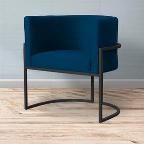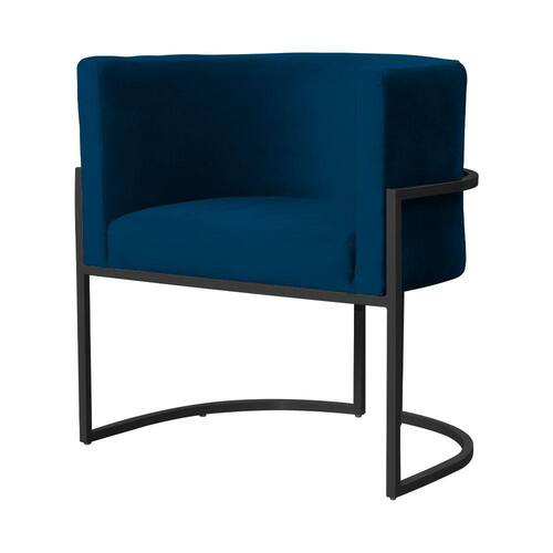 Poltrona Decorativa Luana Veludo Azul Marinho Base Preta Ms Decor
