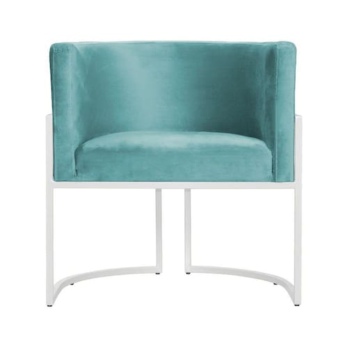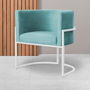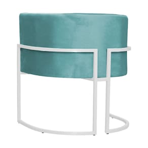 Poltrona Decorativa Luana Veludo Azul Tifany Base Branca Mz Decor