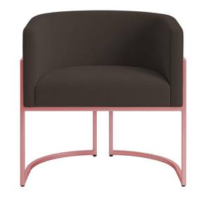 Revestida em tecido veludo, proporciona toque macio e brilho sofisticado, realçando sua presença em qualquer ambiente. Os pés metálicos com pintura rosê complementam a elegância da peça, adicionando um detalhe refinado à sua base.