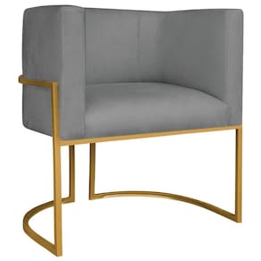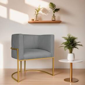 Poltrona Decorativa Luna Base De Ferro Dourado Sintético Cor Cinza