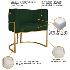 Poltrona Decorativa Luna Base De Ferro Dourado Suede Cor Verde