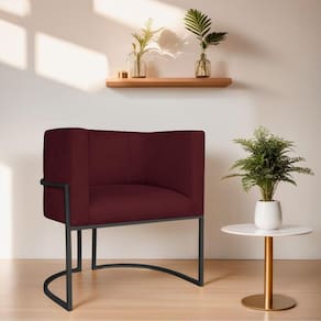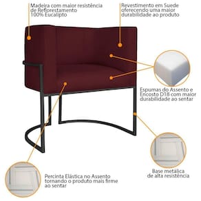 Poltrona Decorativa Luna Base De Ferro Preto Suede Cor Bordô