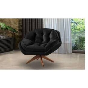 Poltrona Decorativa Luxo Califórnia Com Base Giratória Suede - Preto