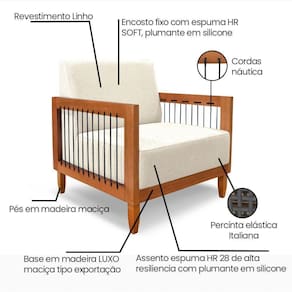 Assento: Fixo com percintas elásticas italiana, espuma HR28 e plumante em silicone