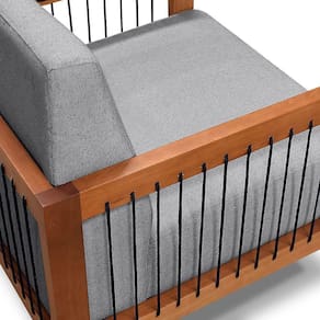 Assento: Fixo com percintas elásticas italiana, espuma HR28 e plumante em silicone