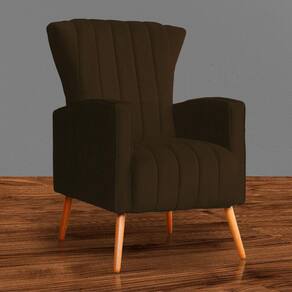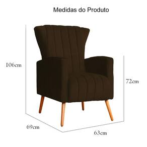 Poltrona Decorativa Melinda Suede Marrom Pés Madeira Mz Decor