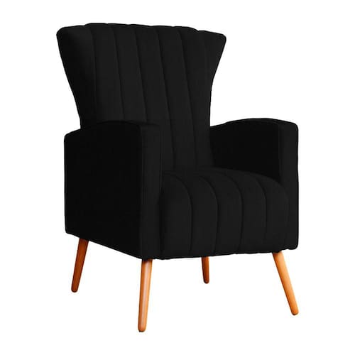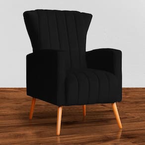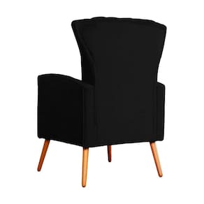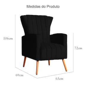 Poltrona Decorativa Melinda Suede Preto Pés Madeira Mz Decor