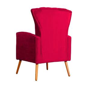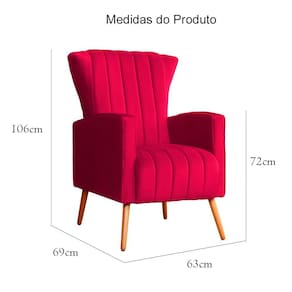 Poltrona Decorativa Melinda Veludo Vermelho Pés Madeira Ms Decor