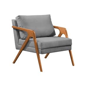 Poltrona Decorativa Mona Luxo Base Madeira Maciça Veludo Cinza