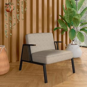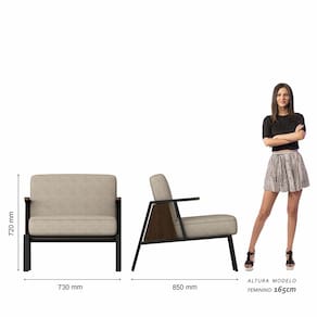 Detalhes Técnicos das Poltronas - Assento e Encosto Tapeçados, Estofados e Fixos - Espuma do Assento e do Encosto: D20 - Tonalidade: Preto Fosco (estrutura)/Imbuia (detalhe braço)/Suede Bege (estofado) - Material: Estrutura em Metalon | Detalhe braço em MDF - Medida Poltrona: A: 72CM x L: 73CM x P: 85CM - Medida do chão até o assento: 42cm de altura - Poltrona suporta até 120KG - Montagem: Difícil