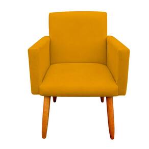 Poltrona Decorativa Nina com Puff New para Sala e Quarto Suede Amarelo- Jylcrom