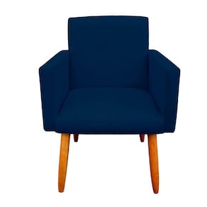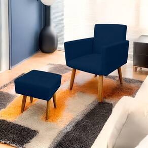 Poltrona Decorativa Nina com Puff New para Sala e Quarto Suede Azul - Jylcrom - Azul Marinho