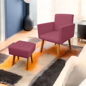 Poltrona Decorativa Nina com Puff New para Sala e Quarto Suede Rose - Jylcrom - Rosê