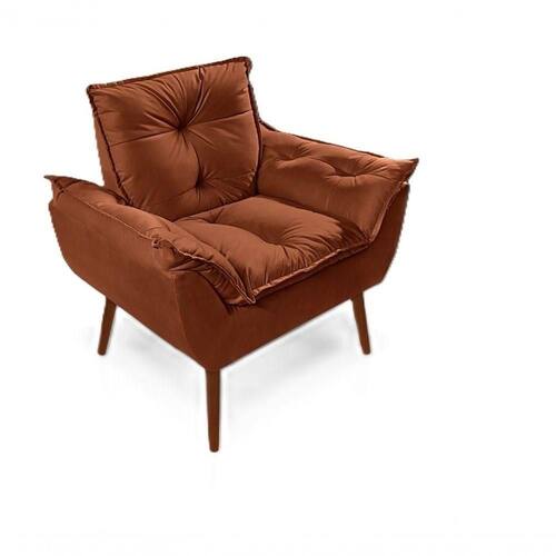 Poltrona Decorativa Opala Confortável para Sala, Quarto, Recepção, Escritório - Suede Luxo Terracota