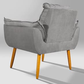 Poltrona Decorativa Opala Pés Palitos Suede Cinza - Vallisa Decor