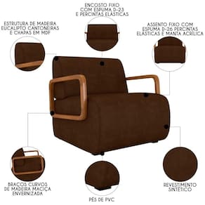 Deixe-se envolver pelo conforto e estilo da Poltrona Decorativa Orgânica para Sala Belarus K04 Sintético Marrom Escuro, da Mpozenato.