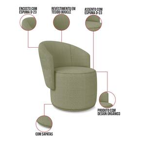A Poltrona Malu é uma peça que combina segurança, conforto e durabilidade. Ela tem um design orgânico que remete às formas encontradas na natureza oferecendo uma sensação de calma e equilíbrio criando um espaço acolhedor e relaxante. Além da sua simetria artística e curvas suaves, ela contém um revestimento em Bouclê que harmoniza com qualquer ambiente. Pode ser utilizada em sala de estar, recepções, escritórios, lojas, espaços comerciais, ou qualquer outro espaço que você queira decorar com estilo e bom gosto. Ela tem uma estrutura em madeira de reflorestamento eucalipto, que garante a resistência e a sustentabilidade do produto. Ela suporta até 120 kg de peso, podendo ser utilizada por pessoas de diferentes biotipos. Ela tem um acabamento reforçado e espuma de qualidade D23, que oferece maciez e aconchego. Ela contém encosto arredondados e um assento cilíndrico resultando em um acabamento impecável conferindo muito mais valor e elegância ao produto. As sapatas plásticas (fixa) são pequenas proteções colocadas na base dos pés para evitar que eles risquem ou danifiquem o chão. A Poltrona Malu é um móvel de alta qualidade, que exala sofisticação e conforto. Ela é fácil de transportar, pois tem um peso leve e um tamanho compacto. Ela vai trazer charme, conforto incomparável e durabilidade para o seu ambiente. Corra e garanta seu kit 2 Poltronas agora mesmo!