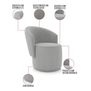 A Poltrona Malu é uma peça que combina segurança, conforto e durabilidade. Ela tem um design orgânico que remete às formas encontradas na natureza oferecendo uma sensação de calma e equilíbrio criando um espaço acolhedor e relaxante. Além da sua simetria artística e curvas suaves, ela contém um revestimento em Suede que harmoniza com qualquer ambiente. Pode ser utilizada em sala de estar, recepções, escritórios, lojas, espaços comerciais, ou qualquer outro espaço que você queira decorar com estilo e bom gosto. Ela tem uma estrutura em madeira de reflorestamento eucalipto, que garante a resistência e a sustentabilidade do produto. Ela suporta até 120 kg de peso, podendo ser utilizada por pessoas de diferentes biotipos. Ela tem um acabamento reforçado e espuma de qualidade D23, que oferece maciez e aconchego. Ela contém encosto arredondados e um assento cilíndrico resultando em um acabamento impecável conferindo muito mais valor e elegância ao produto. As sapatas plásticas (fixa) são pequenas proteções colocadas na base dos pés para evitar que eles risquem ou danifiquem o chão. A Poltrona Malu é um móvel de alta qualidade, que exala sofisticação e conforto. Ela é fácil de transportar, pois tem um peso leve e um tamanho compacto. Ela vai trazer charme, conforto incomparável e durabilidade para o seu ambiente. Corra e garanta sua Poltrona agora mesmo!