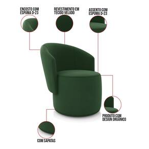 A Poltrona Malu é uma peça que combina segurança, conforto e durabilidade. Ela tem um design orgânico que remete às formas encontradas na natureza oferecendo uma sensação de calma e equilíbrio criando um espaço acolhedor e relaxante. Além da sua simetria artística e curvas suaves, ela contém um revestimento em Veludo que harmoniza com qualquer ambiente. Pode ser utilizada em sala de estar, recepções, escritórios, lojas, espaços comerciais, ou qualquer outro espaço que você queira decorar com estilo e bom gosto. Ela tem uma estrutura em madeira de reflorestamento eucalipto, que garante a resistência e a sustentabilidade do produto. Ela suporta até 120 kg de peso, podendo ser utilizada por pessoas de diferentes biotipos. Ela tem um acabamento reforçado e espuma de qualidade D23, que oferece maciez e aconchego. Ela contém encosto arredondados e um assento cilíndrico resultando em um acabamento impecável conferindo muito mais valor e elegância ao produto. As sapatas plásticas (fixa) são pequenas proteções colocadas na base dos pés para evitar que eles risquem ou danifiquem o chão. A Poltrona Malu é um móvel de alta qualidade, que exala sofisticação e conforto. Ela é fácil de transportar, pois tem um peso leve e um tamanho compacto. Ela vai trazer charme, conforto incomparável e durabilidade para o seu ambiente. Corra e garanta sua Poltrona agora mesmo!