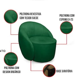 A Poltrona Lua é uma peça que combina segurança, conforto e durabilidade. Ela tem um design orgânico que remete às formas encontradas na natureza como ondas, folhas ou conchas que além de se moldar ao corpo humano, evoca uma sensação de calma e equilíbrio criando um espaço acolhedor e relaxante. Além da sua simetria artística e curvas suaves, ela contém uma Base Giratória com giro em 360 graus e um revestimento em tecido Suede Verde, que cria uma conexão entre a peça e o ambiente. Ela é ideal para quem busca móveis que não só sejam bonitos, mas que também proporcionem conforto e bem-estar. Pode ser utilizada em sala de estar, recepções, escritórios, lojas e espaços comerciais, ou qualquer outro espaço que você queira decorar com estilo e bom gosto. Ela tem uma estrutura em madeira de reflorestamento eucalipto, que garante a resistência e a sustentabilidade do produto. Ela suporta até 120 kg de peso, podendo ser utilizada por pessoas de diferentes biotipos. Ela tem um acabamento reforçado e espuma de qualidade D23, que oferece maciez e aconchego. Ela contém detalhes de costura no encosto e um assento cilíndrico arredondado resultando em um acabamento impecável conferindo muito mais valor e elegância ao produto, oferecendo maior liberdade de movimento ao cliente. A Poltrona Lua é um móvel de alta qualidade, que exala sofisticação e conforto. Ela é fácil de transportar, pois tem um peso leve e um tamanho compacto. A Poltrona Lua é um produto que vai fazer a diferença na sua decoração e no seu bem-estar. Ela vai trazer charme, Conforto incomparável e durabilidade para o seu ambiente. Aproveite essa oferta e leve para casa uma poltrona de qualidade por um preço incrível. Essa é a sua chance de ter uma poltrona deslumbrante por um preço imperdível. Corra e garanta seu Kit 02 Poltronas antes que acabe o estoque!