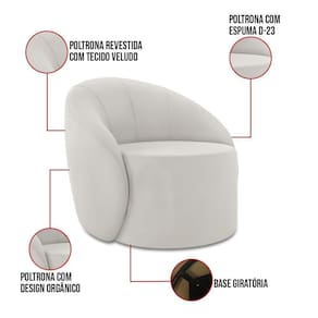 Poltrona Decorativa Orgânica Giratória Kit 2 Lua Veludo Cinza D03 - D'rossi