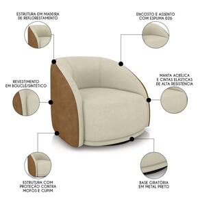 Bem-estar e elegância descrevem bem a Poltrona Decorativa Orgânica Giratória Lya M22 Boucê Bege/Sintético Marrom, da Mpozenato, o que a torna ideal para compor a decoração de diversos ambientes, desde a sala de estar, living, quarto, escritório e por aí vai.